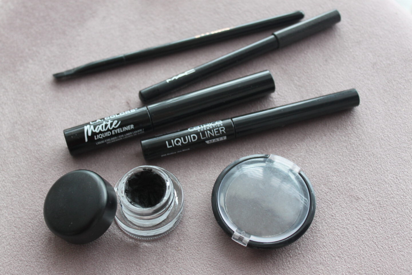 Eyeliners zijn er in veel verschillende soorten. Je hebt gel liners in potjes, liquid liners in een soort pen vorm, eyeliner potloden en je kunt zelfs met poeder een eyeliner zetten. Lees hier mijn vorige blog over hoe je dit doet! Mijn voorkeur gaat uit naar een gel liner potje met een schuin eyelinerkwastje. Let er hierbij goed op dat de kleine haartjes van je kwast niet alle kanten op springen. Hierdoor wordt het namelijk super lastig om een echt strakke lijn te zetten.