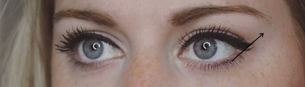 Ook bij een winged eyeliner (waar ik altijd enorm fan van ben!) geldt hetzelfde: volg altijd de lijnen van je oog. Trek een denkbeeldig pijltje van het laatste punt van waar normaal je eyeliner stopt naar het buitenste puntje van je wenkbrauw. Zet je kwastje schuin op het denkbeeldige pijltje en maak een beweging naar beneden. Maak het puntje zo dun mogelijk door je kwastje helemaal plat te drukken aan beiden kanten op je hand of een ander glad oppervlak. Hierbij kun je hem zo ver richting je wenkbrauw zetten als je zelf wilt. En zo creëer je een perfecte wing! Maar bedenk wel: hoe verder je hem richting je wenkbrauw zet, hoe ‘heftiger’ de wing wordt. Wil je liever een subtiele wing, zet hem dan ongeveer zo ver als je buitenste wimper wanneer je recht vooruit kijkt. Zo ‘blendt’ de eyeliner een beetje in met je wimpers!